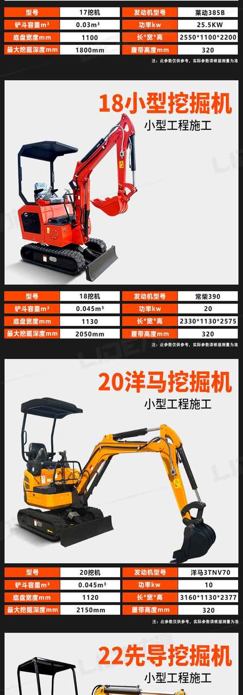 3 常见的小挖机型号有:0.8吨、1吨、1.5吨、2吨、2.5吨、3吨等,同时还有不同的品牌和系列供用户选择。