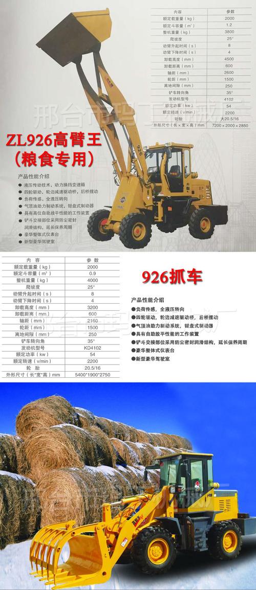 1、小型装载机小型装载机的功率小于74kw,灵活便捷、操作简单。