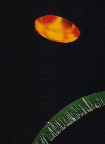 于是重点来了,她正指着正上方的哪颗星,我们跟着她看的时候,刚好就在那里,突然亮起几个发光的圆圈,就像地球是一个漆黑的房间,突然被点亮了一样。本来我们正说着话的,那一瞬间空气都凝固了,还没等我们反应过来,那几个盘状发光体就开始往我们的左边飞。妈耶,我真真是没见过这场面,大喊了一声“我靠这是啥”就一边观察一边开始哇哇叫,我妈和我姐也慌乱了。有5个这样的盘,但是因为位置很高,背景很暗,它们又很亮,所以看不清三维的形象(但前段时间和我妈聊起来她说只记得有一个,我就按自己的讲吧)飞行高度比一般的飞机高不少,但看上去大很多,和肉眼看到月亮的大小差不多,速度贼快,目测至少是客运飞机的几倍。