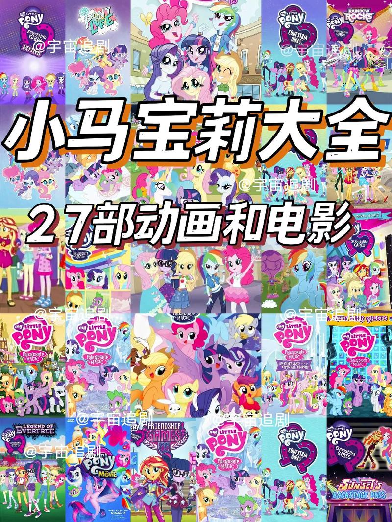 3. **特别篇**:《小马宝莉》系列还包括了一些特别篇,如2017年的《小马国女孩:舞蹈魔法》、《小马国女孩:电影魔法》、《小马国女孩:镜子魔法》,以及2018年的《小马国女孩:被遗忘的友谊》和《小马国女孩:一波三折》等。